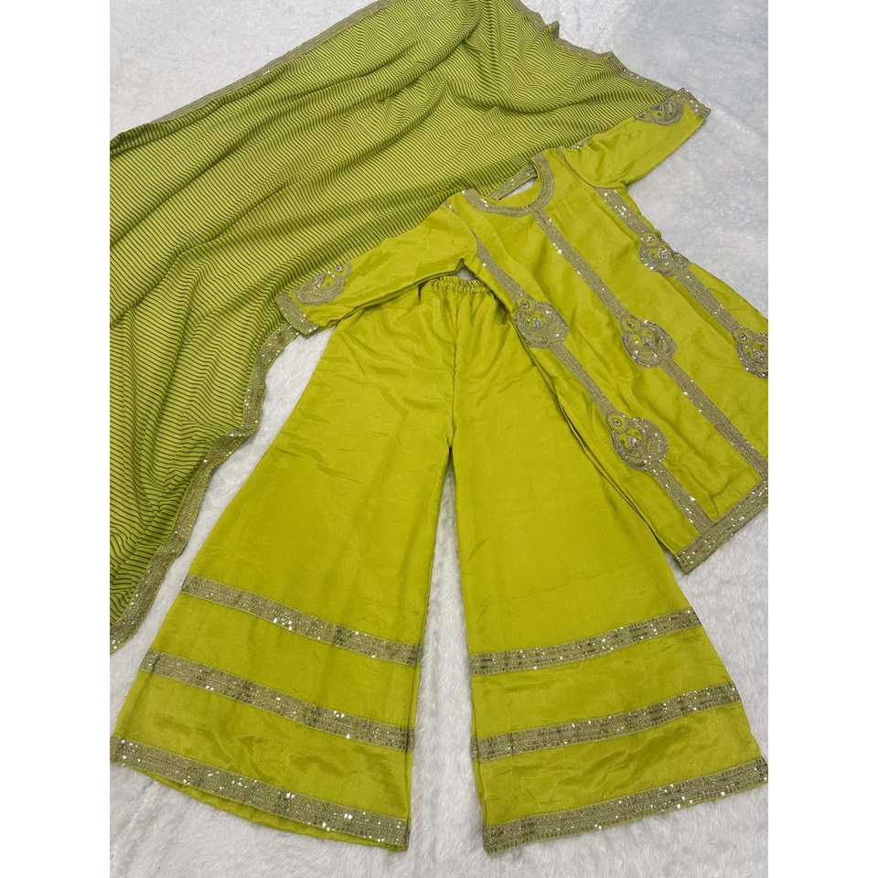 Designer Party Wear Bel ensemble palazzo avec séquence et travail Zari Taille XL