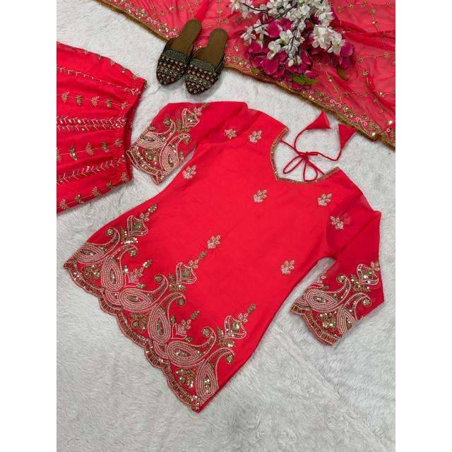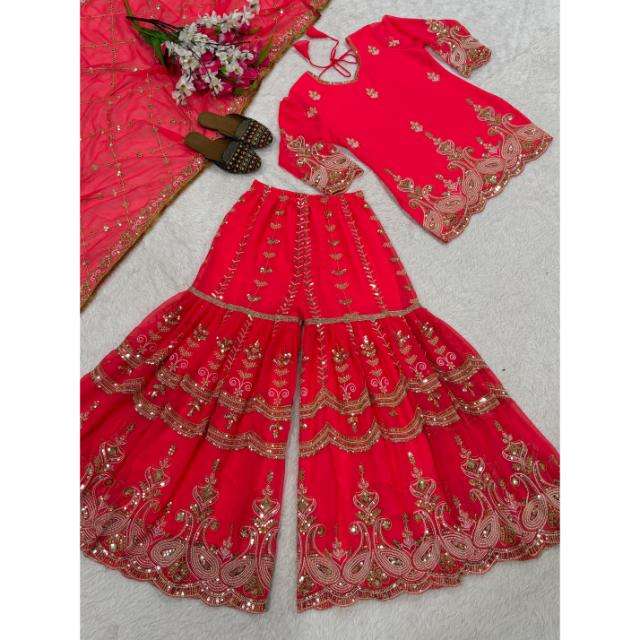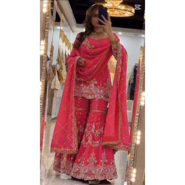 Ensemble de soirée de créateur avec haut, sharara, palazzo et dupatta, tenue ethnique longue jusqu'au sol, idéale pour les mariages et les festivals
