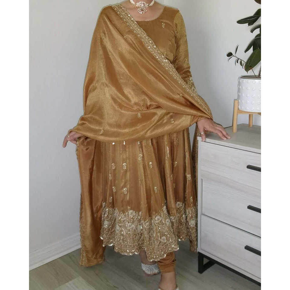 Ensemble robe de soirée de créateur - Bas et dupatta avec broderie lourde, taille XL
