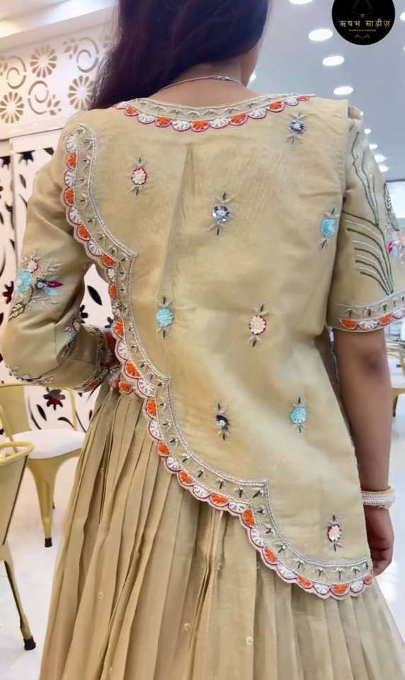 Lehenga Choli traditionnel de créateur en or pur, longueur ras du sol, avec broderies de fils et de sequins, idéal pour les mariages et les réceptions.