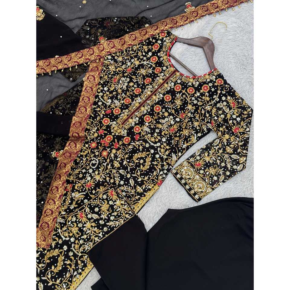 Robes de soirée de créateur HK en noir, taille M, avec haut à bretelles et dupatta, look élégant