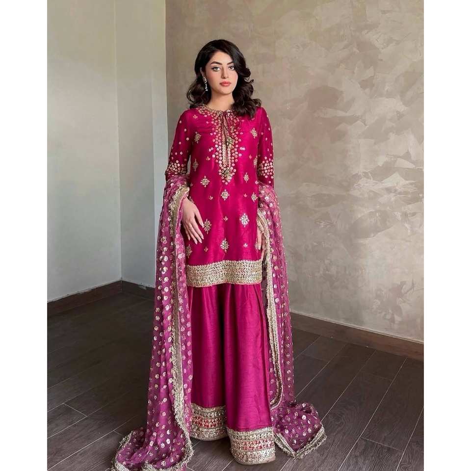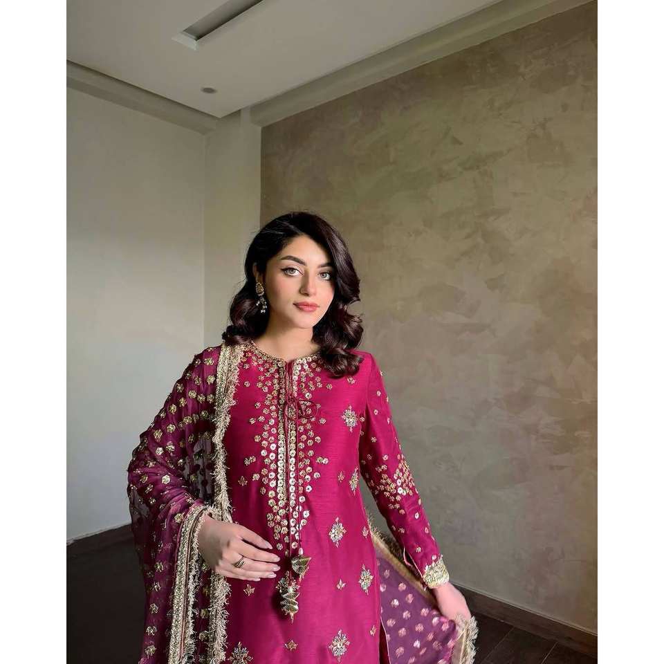 Ensemble de costume élégant pour femme LC, vêtements de soirée en satin à manches longues avec broderie Zari et sequins