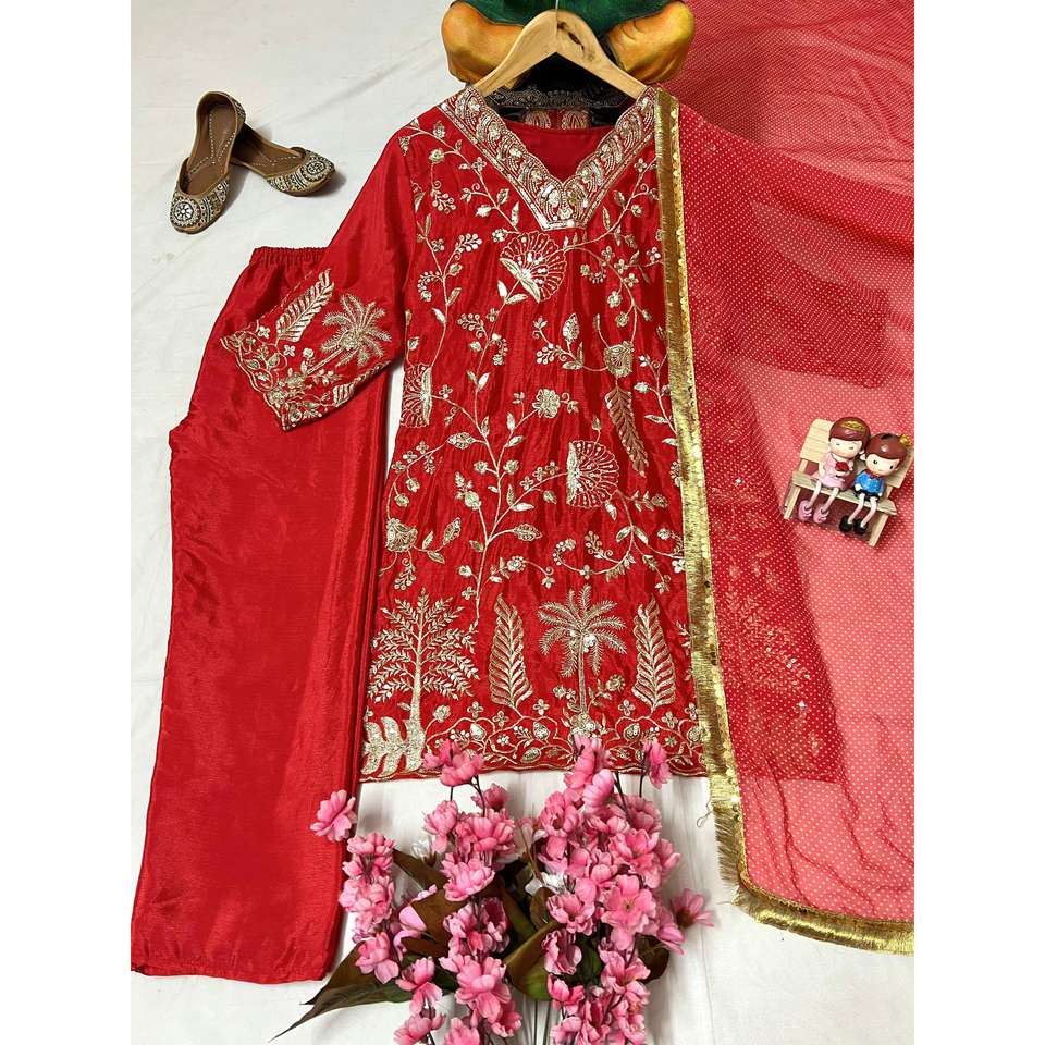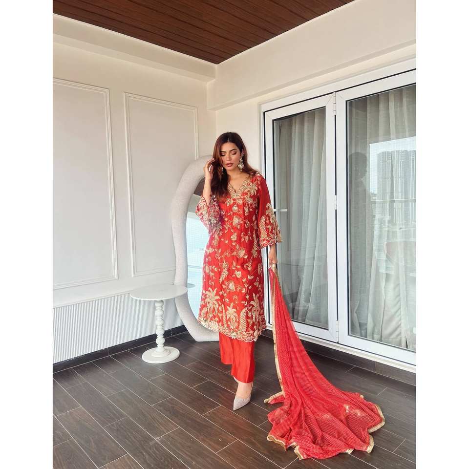 Ensemble de costume de soirée de créateur taille XL avec broderie en zari et sequins