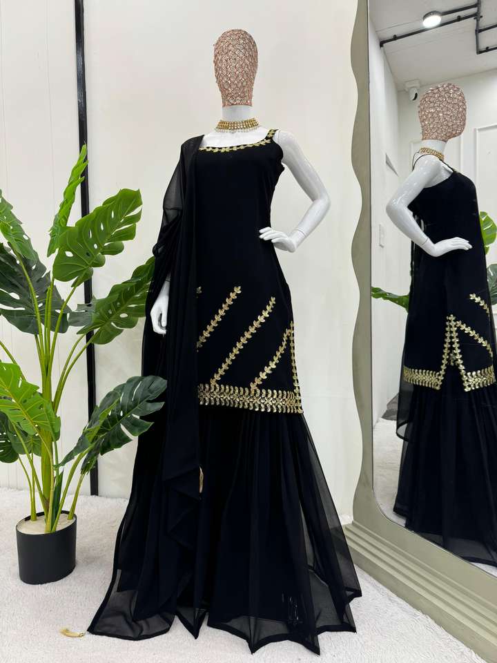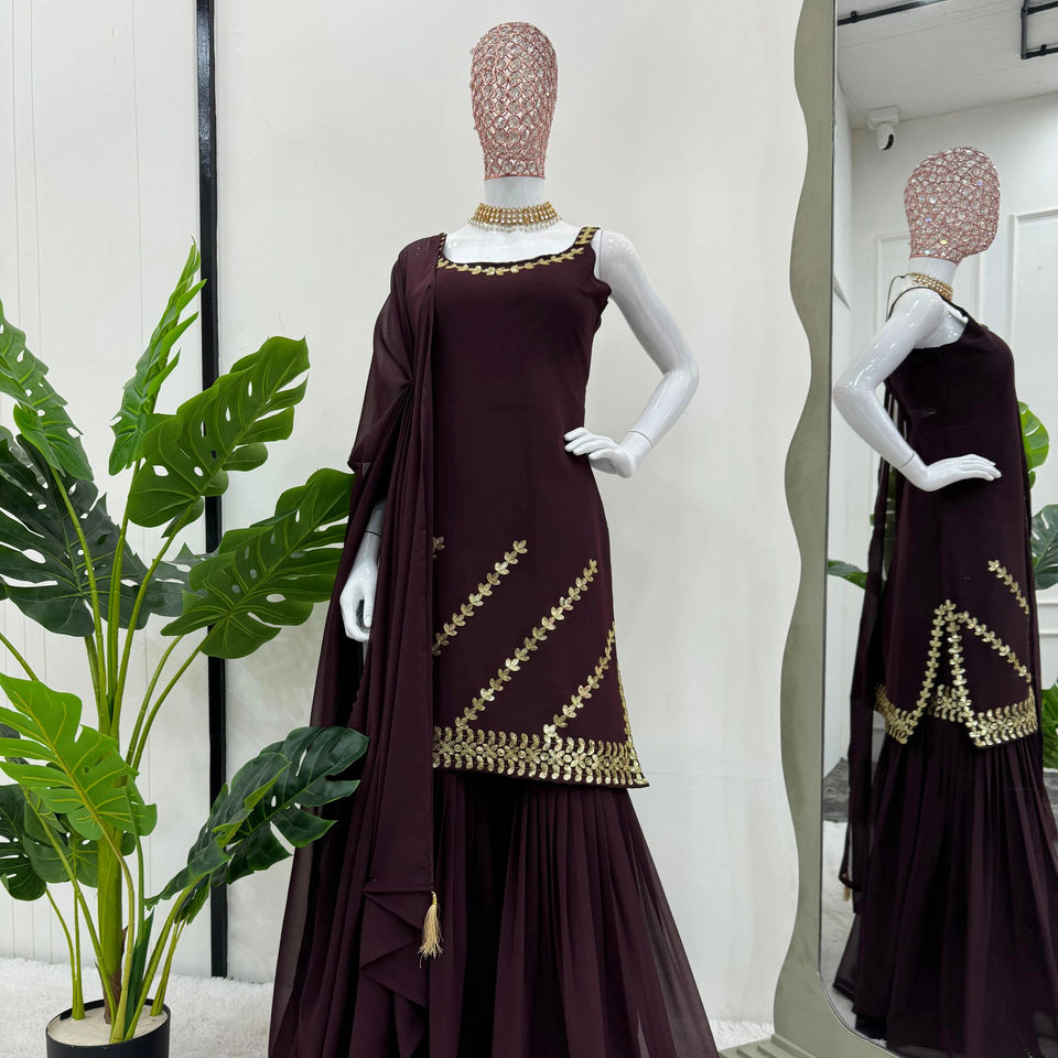 Top de fête de créateur-Sharara et Dupatta avec fil et séquence