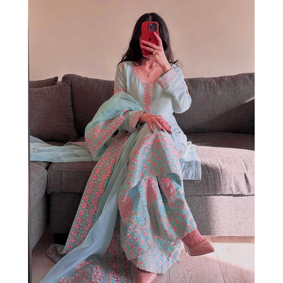Haut et bas de soirée de créateur avec Dupatta Taille XL-pour des tenues élégantes