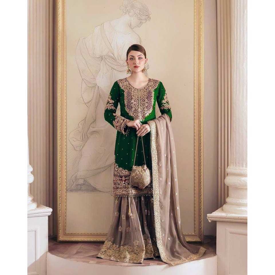 Haut et bas de soirée de créateur avec Dupatta Taille 2XL