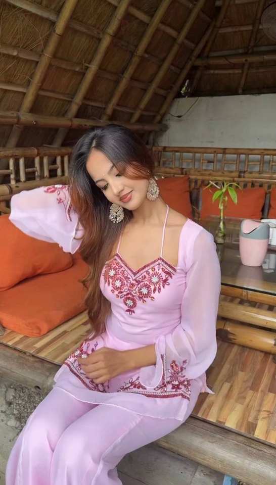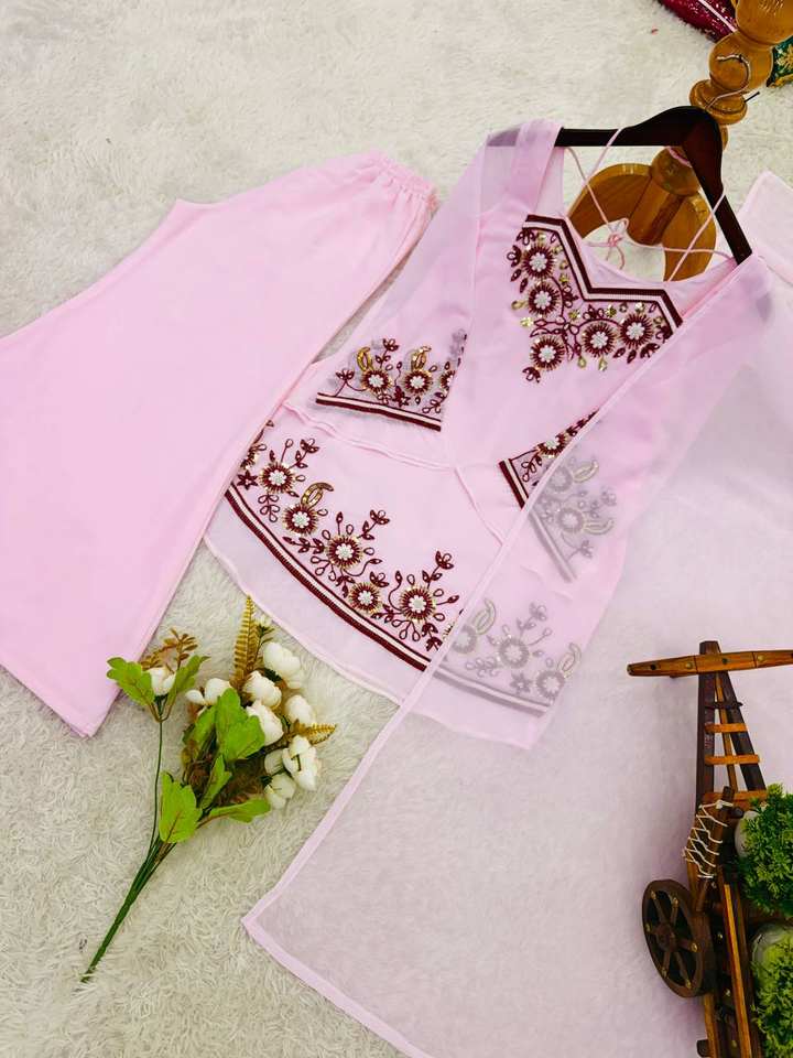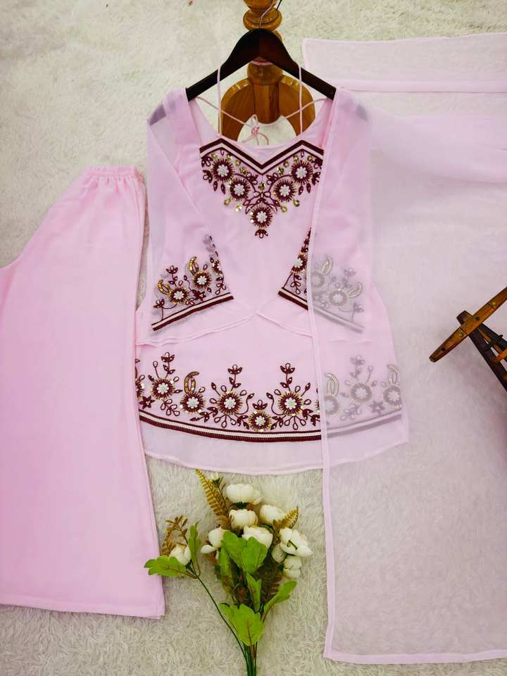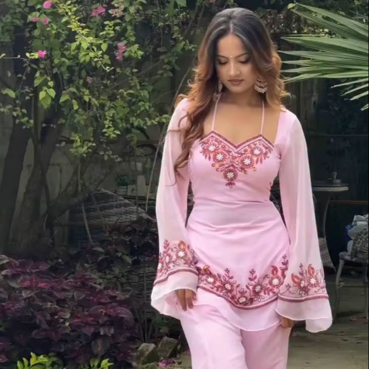 Ensemble Kurta rose brodé de créateur avec palazzo | Costume ethnique élégant à motifs floraux pour femmes | Tenue de fête festive