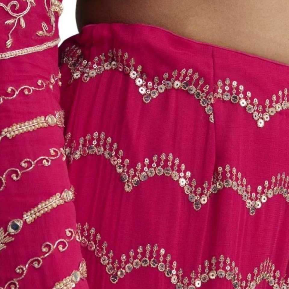 Ensemble Sharara en Georgette rose de créateur avec paillettes en miroir et broderie Zardosi idéal pour les réceptions de mariage et les réceptions en vrac pour femmes