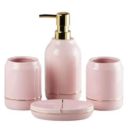 Ensemble de salle de bain design en silicone rose, organisateur moderne et minimaliste adapté à un cadeau de pendaison de crémaillère pour un mariage et un usage quotidien