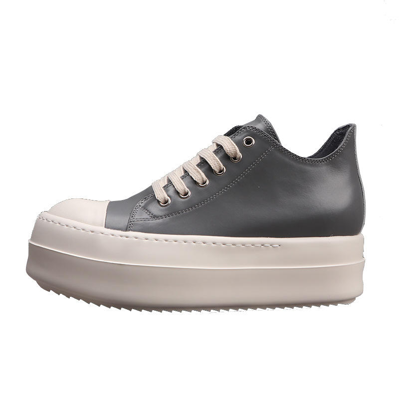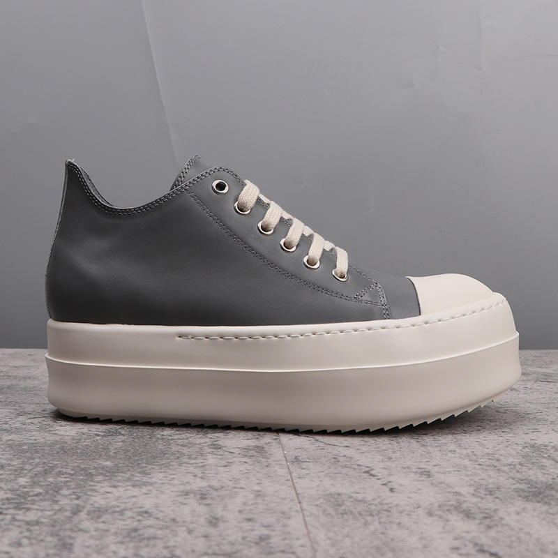 Chaussures plateforme de créateur pour hommes, baskets basses en cuir gris à semelle épaisse, chaussures tendance pour femmes, chaussures augmentant la taille de 6 cm