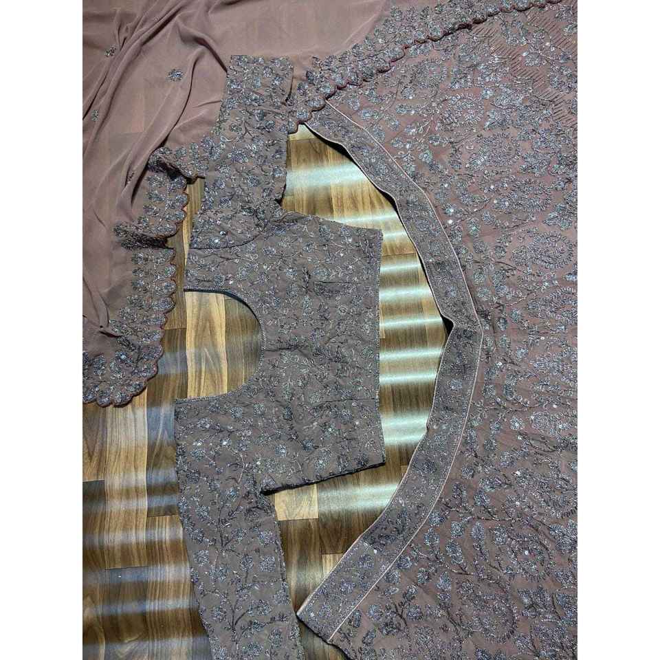 Lehenga Choli de soirée en polyester de créateur avec de magnifiques broderies au fil