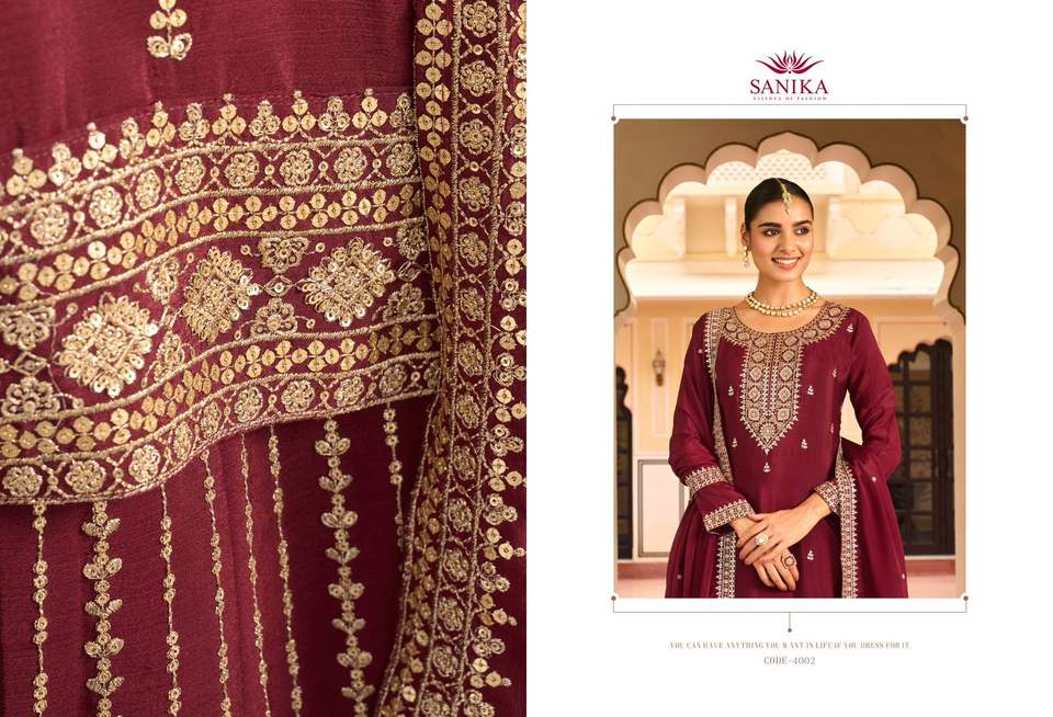 Designer Premium Chinon Soie Avec Miroir Et Broderie Travail Salwar Costume Fabricant Et Fournisseur De Surat Au Taux Le Plus Bas