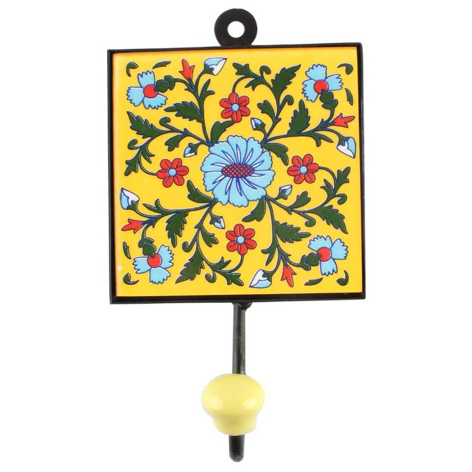 Crochets en céramique pour vêtements pour enfants, supports de style bohème, fleurs jaunes, artisanat indien Durable, 20 pièces
