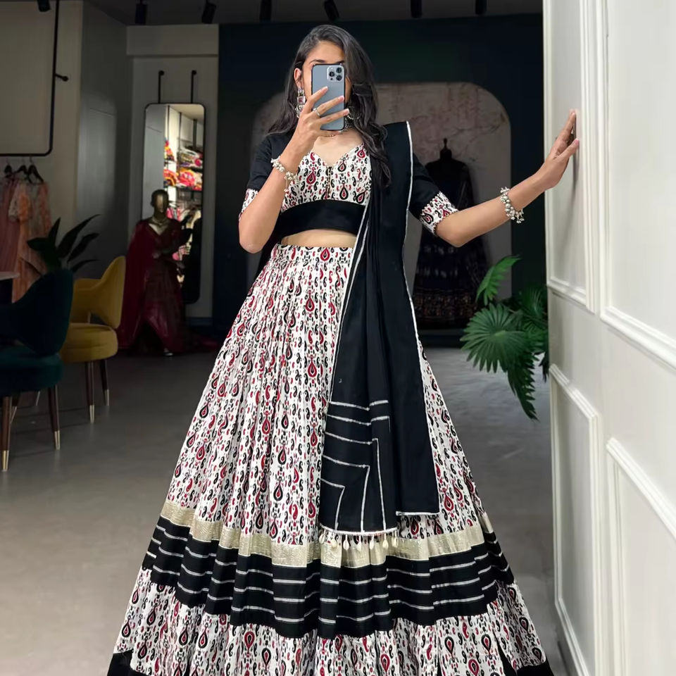 Lehenga en pur coton avec bordure en dentelle imprimée style pakistanais Lehenga Choli pour demoiselles d'honneur ou vêtements de mariage