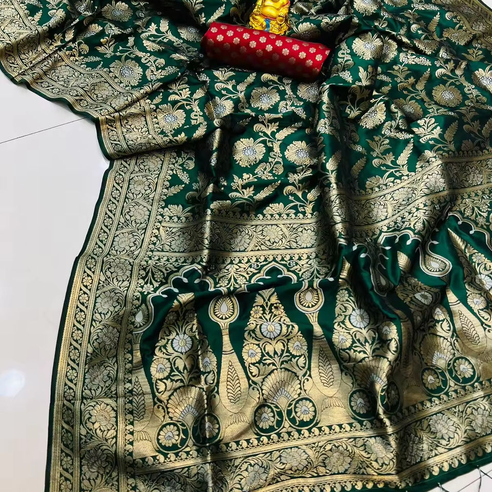 Saree Handloom Designer en soie pure avec bordure tissée Zari Fête traditionnelle en coton et fonction de mariage Wear Sari