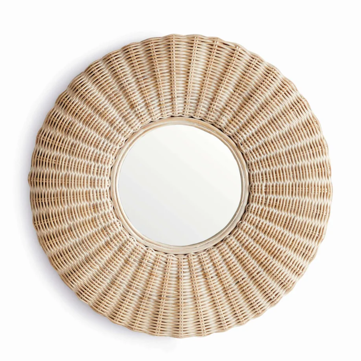 Designer Rattan Round Mirror Handmade Glossy Decorative Wall Mirror for Interior Modern Home Bedroom Living Room Design
