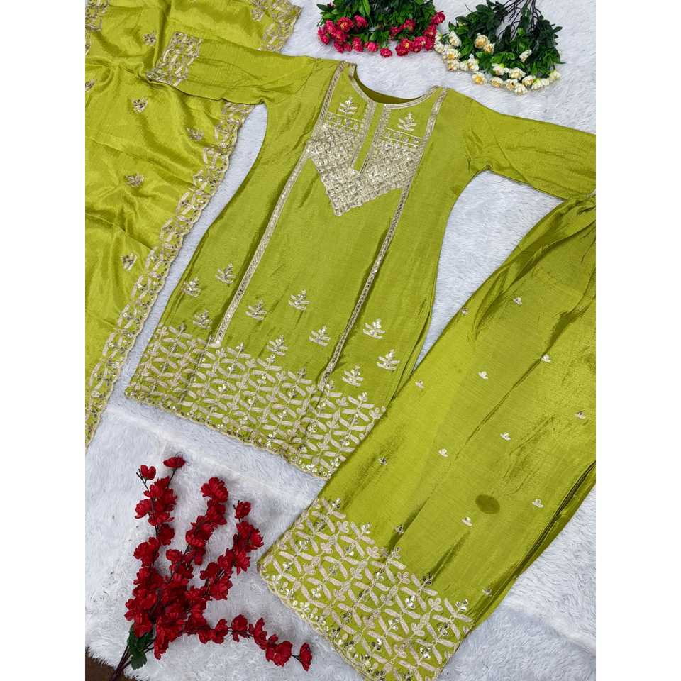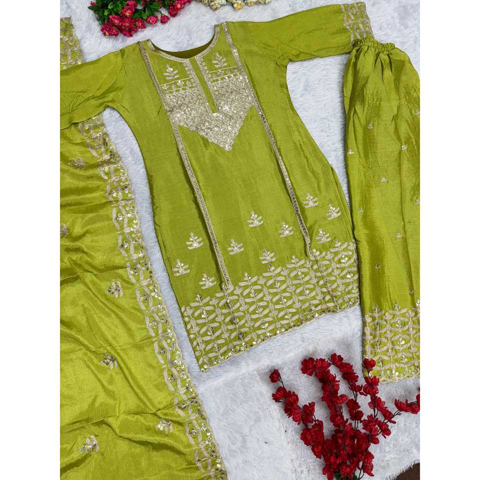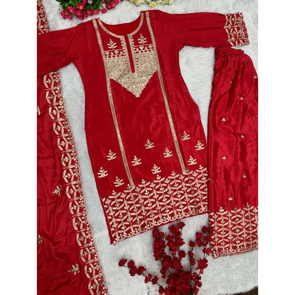 Salwar Kameez de créateur en polyester rouge, tenue de soirée, haut, bas et dupatta avec broderie de sequins, taille M ST