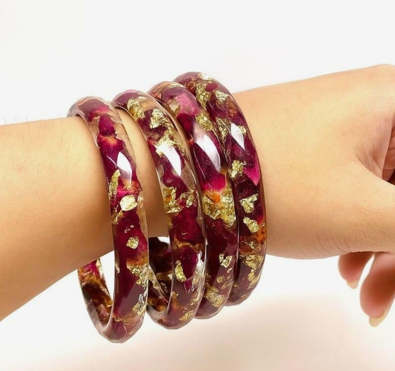 Ensemble de bracelets en résine écologiques de créateur, faits à la main, polis, pour femmes, pour mariages, fêtes, événements, bijoux d'art et de collection