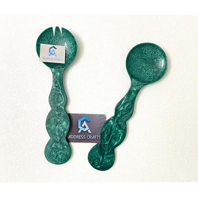Set de service à salade en résine design Outils pour fruits, légumes et salades faits à la main Ustensiles de service en résine écologique Outils pour salade Coutellerie