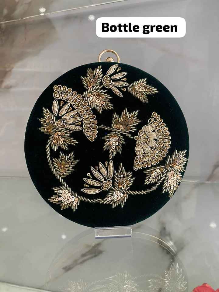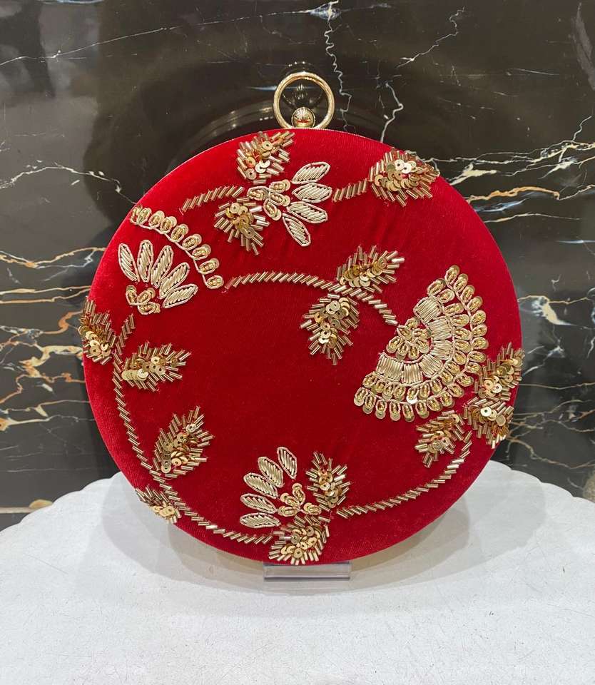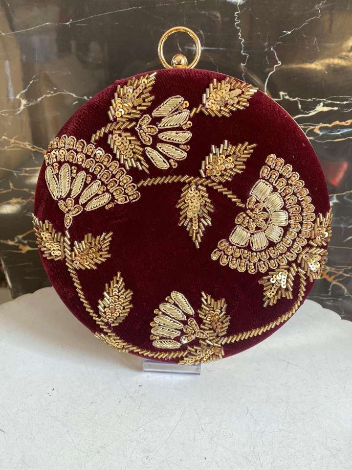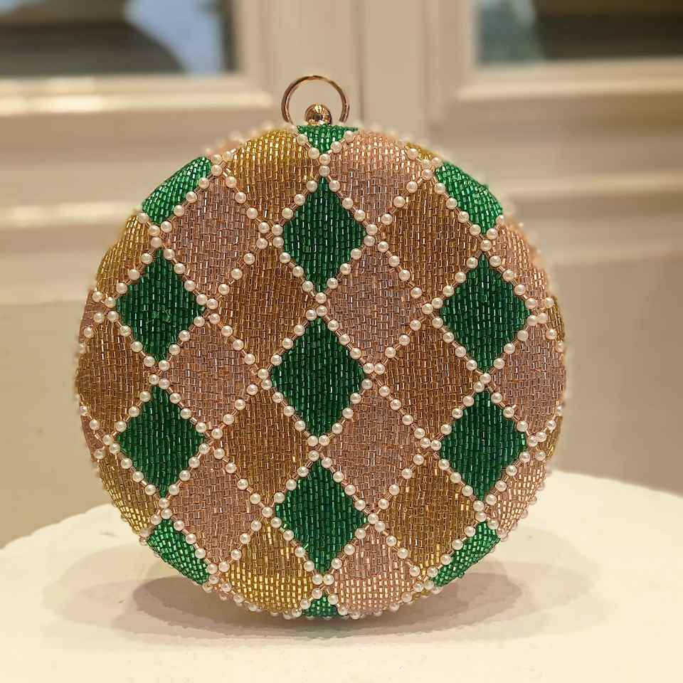 Pochette de forme ronde de luxe faite à la main pour les mariages, fêtes et événements Décoration de perle de sac à main de soirée durable et brodée