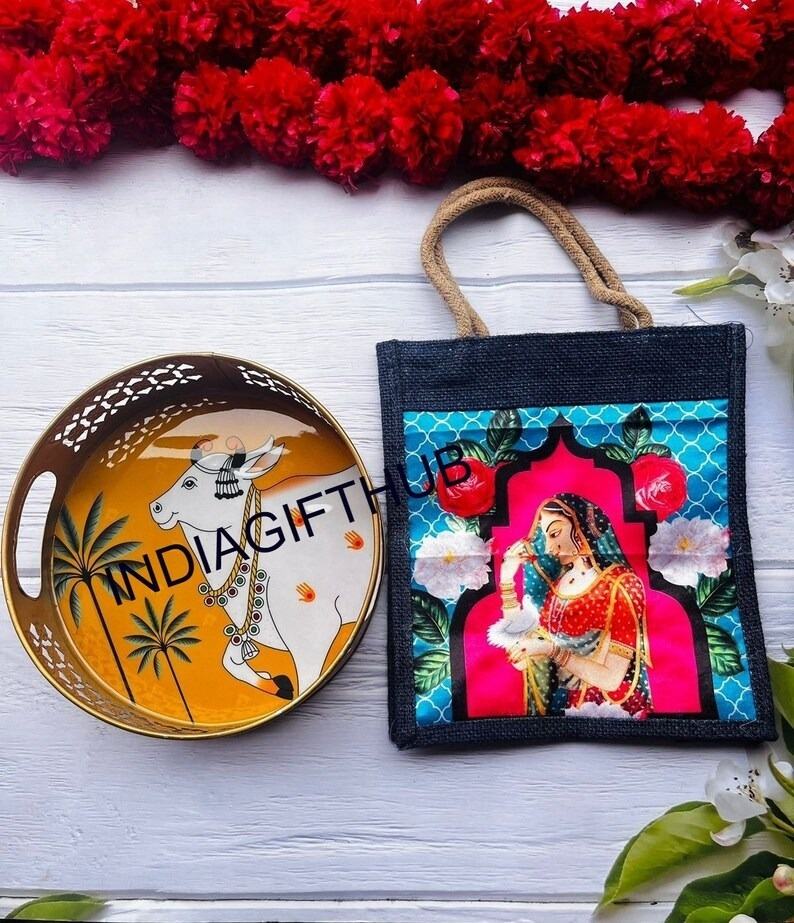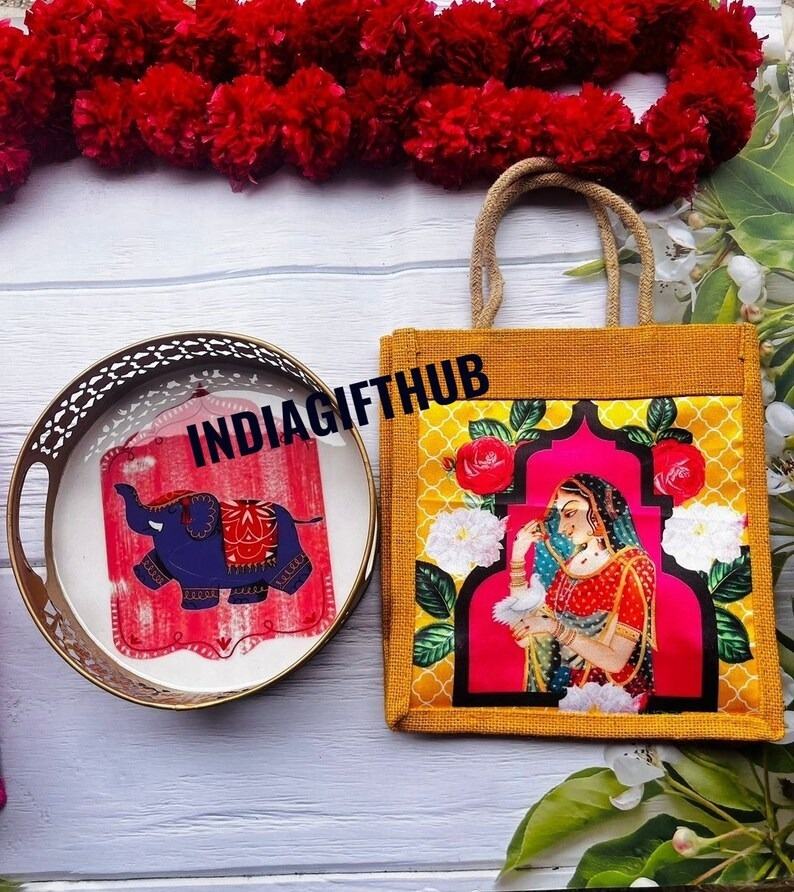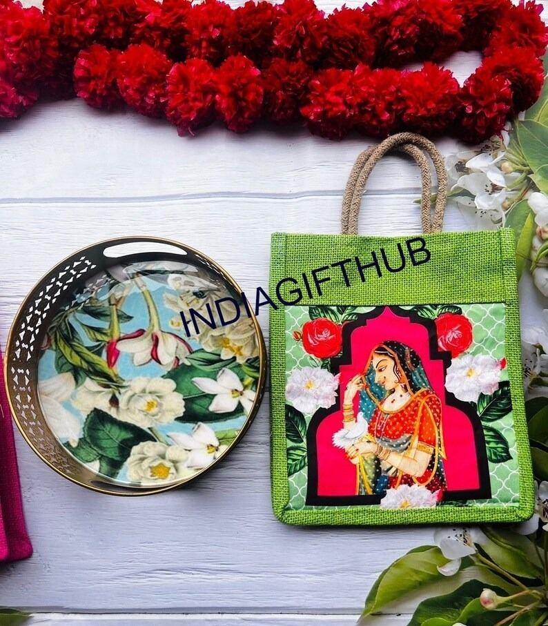 Product name:Enamel Painted Tray With Maharani Printed Jute Bag