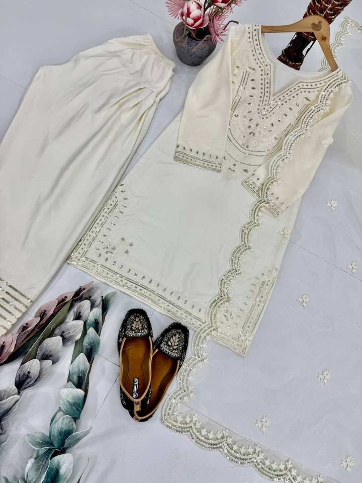 PALAZZO WORK:EMBROIDERY CHIN SEQUENCES WORK