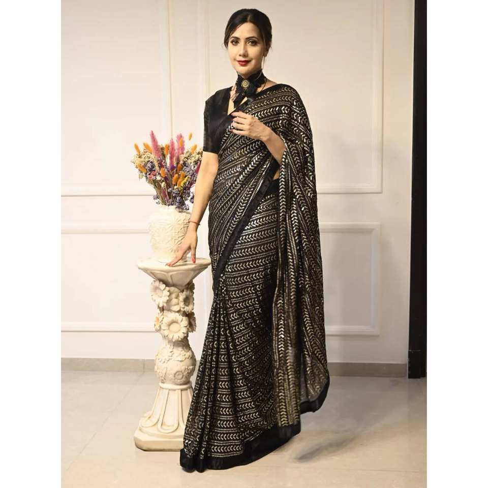 Saree de créateur avec séquence pour fête et tenue de club