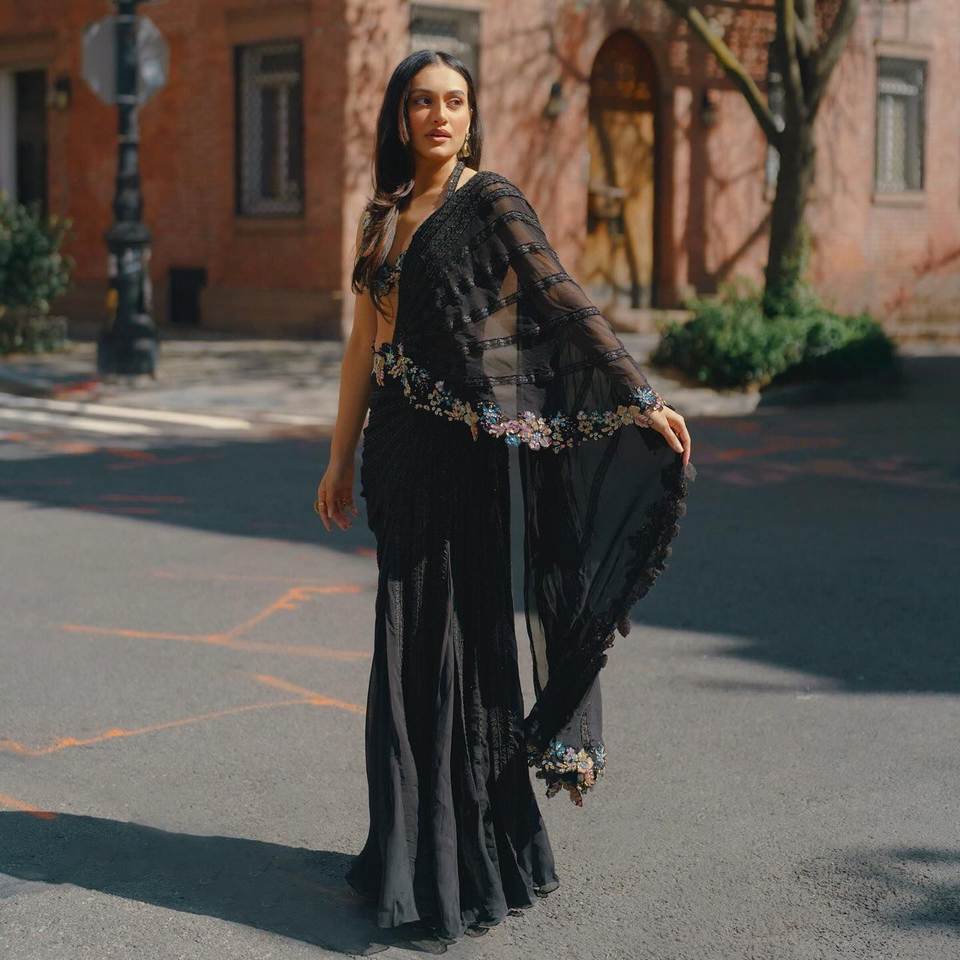 Saree de créateur avec séquence pour fête et tenue de club