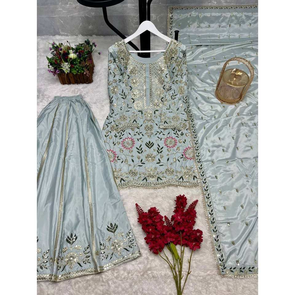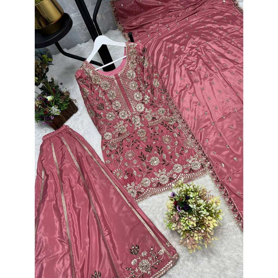 Ensemble de costume en satin rose pour femme DHK, 100% polyester, avec broderie et travail de sequins époustouflants