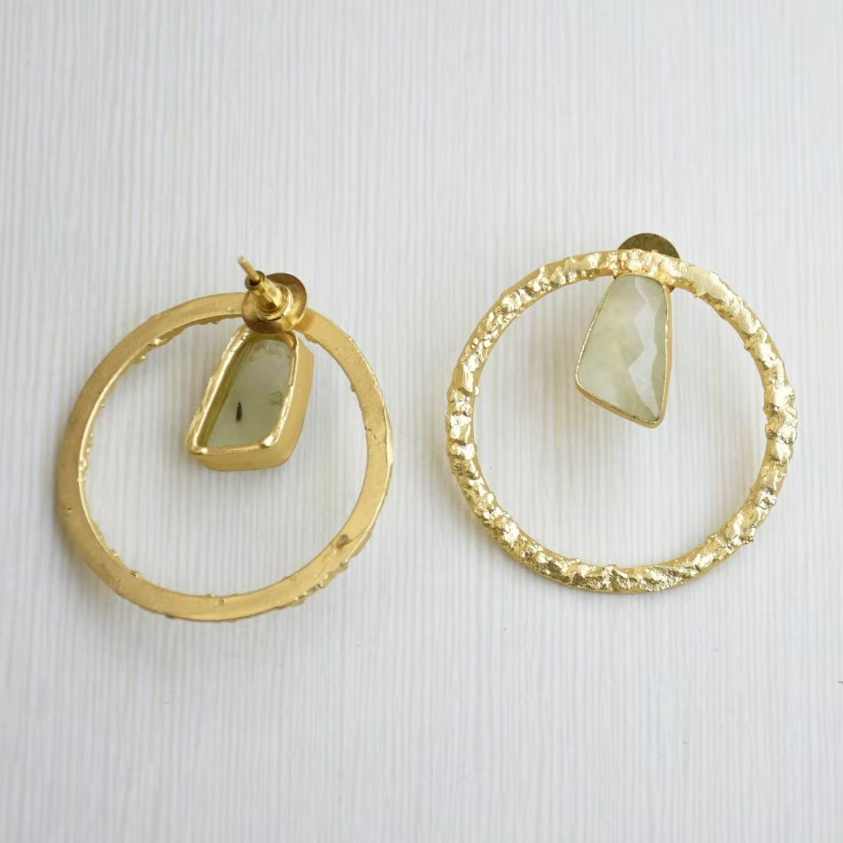 Boucles d'oreilles en laiton de qualité supérieure, plaquées or, avec pierres organiques, finition plaquée or 18 carats, motif unique de créateur, vente en gros