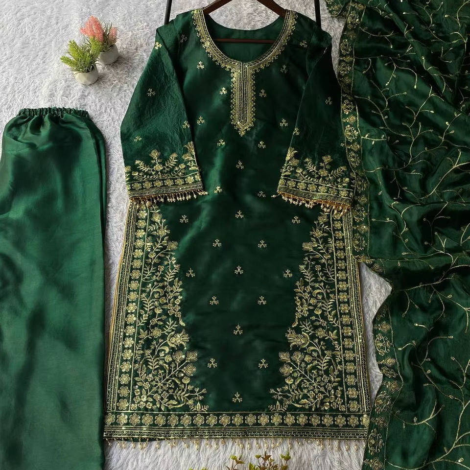 Costume ethnique en soie JMY avec broderie de sequins – Vêtement de fête de luxe