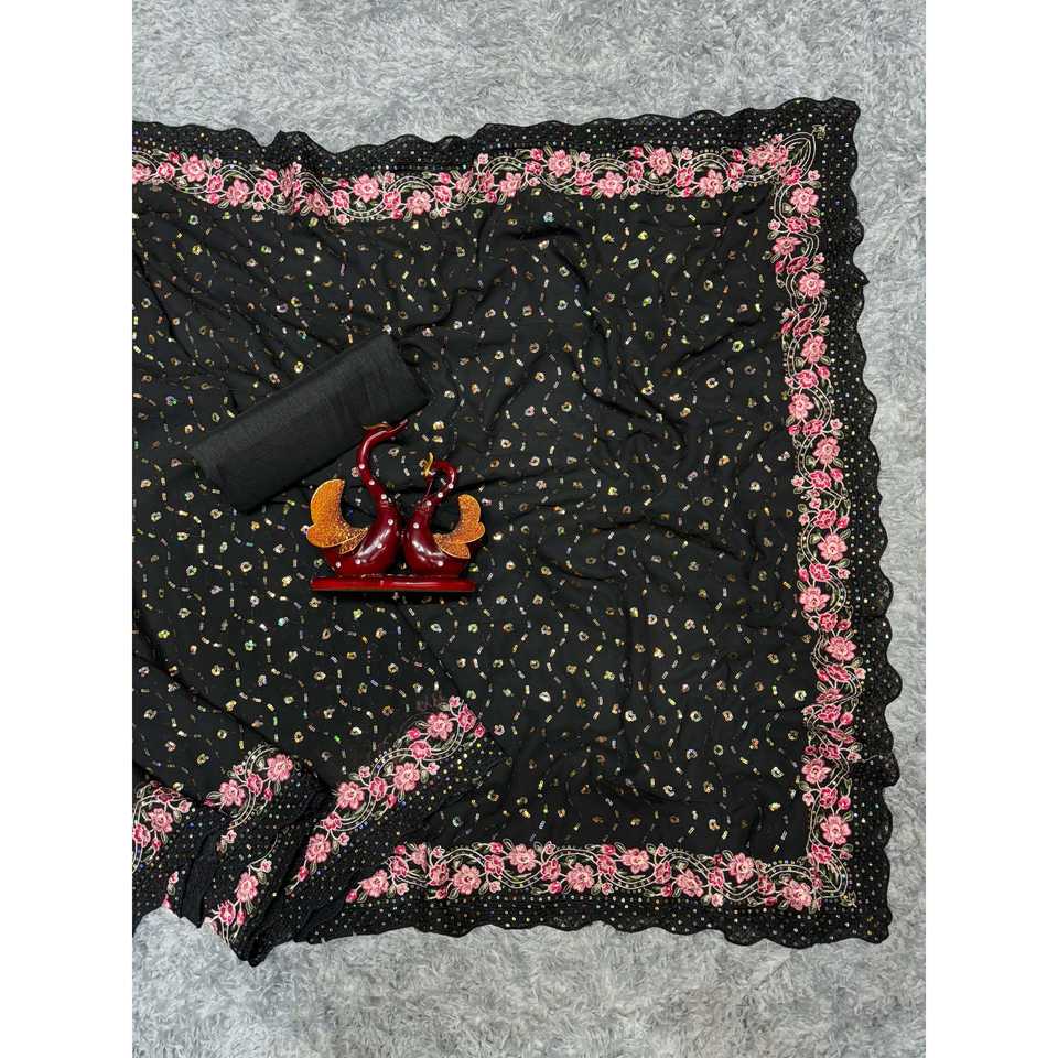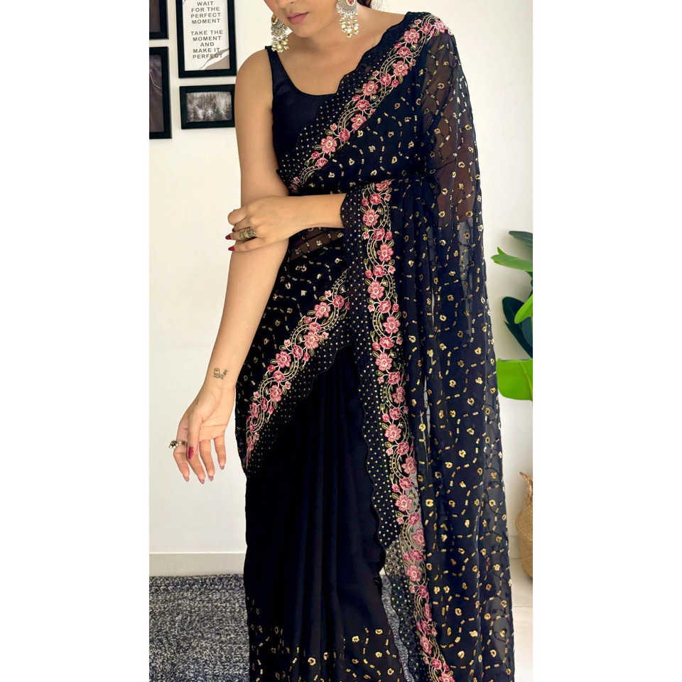 Robe élégante de carrière Saree à sequins et multi-broderies de créateur