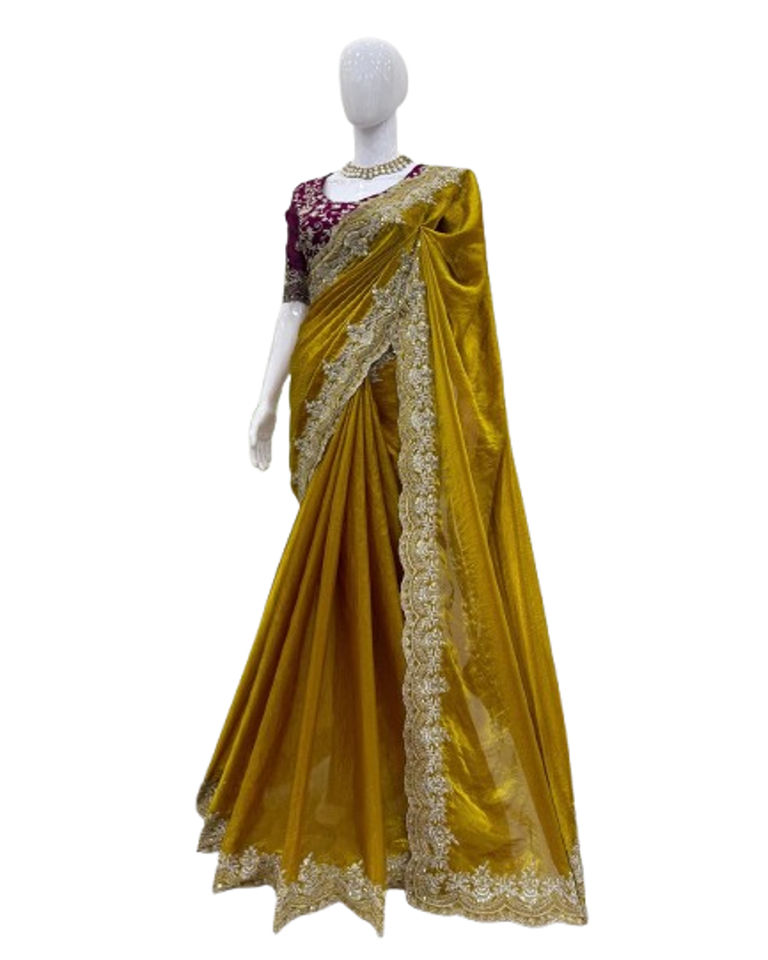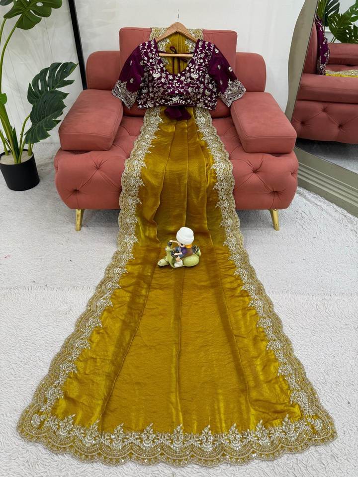 Designer Soie Fait Saree Design Exclusif Dernière Collection Avec Broderie Travail Lourd Nuptiale Fête Porter Ethnique