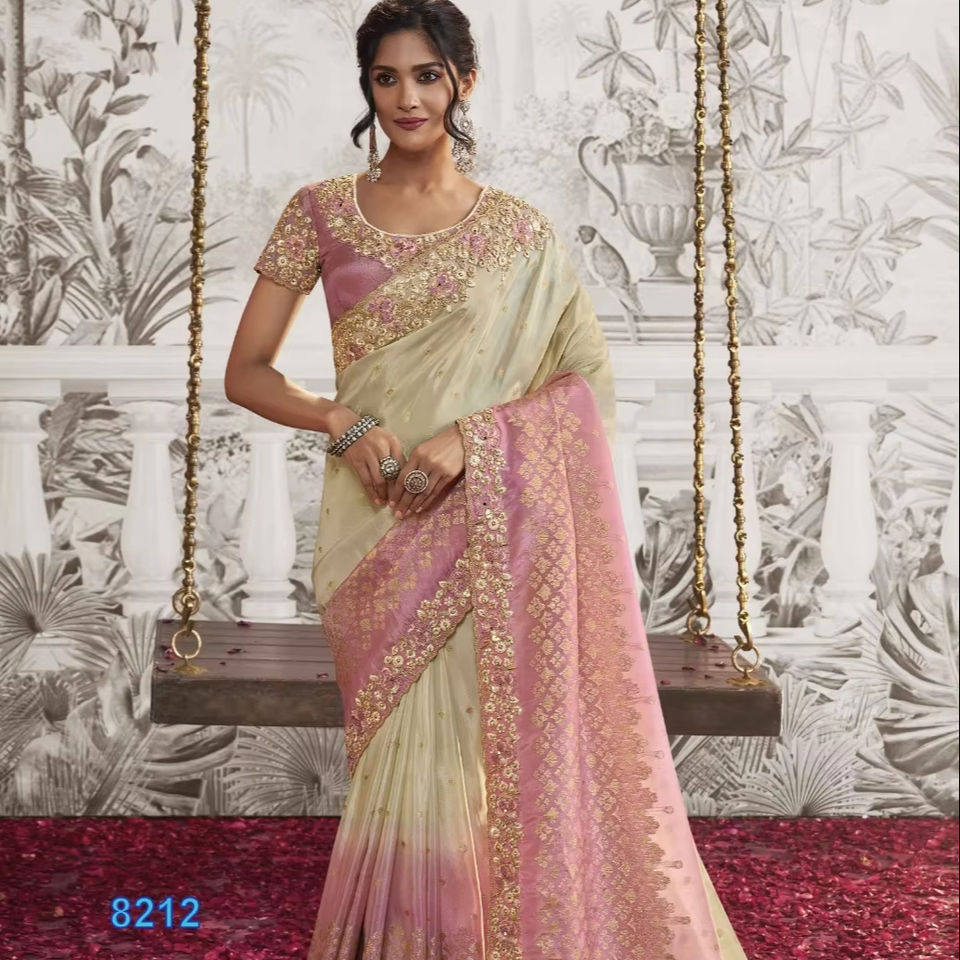 Saree en soie de créateur avec pierre de broderie perle véritable travail de broderie sur le tissage de la bordure Zari pour les fêtes et les mariages