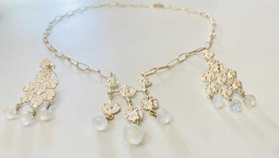 Parure de bijoux en argent de créateur Parure de bijoux en argent magnifique pour les femmes avec pendentif et boucles d'oreilles faits à la main pour la mariée