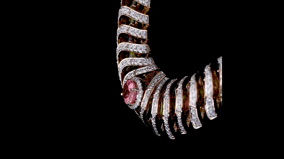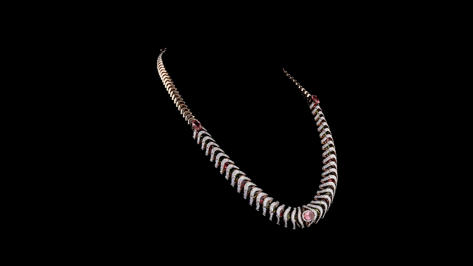 Collier de créateur en argent plaqué or rose avec diamant rond brillant cultivé en laboratoire | Bijoux de luxe pour fiançailles et mariage