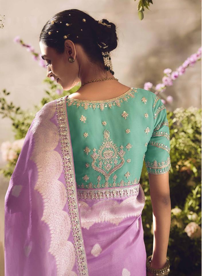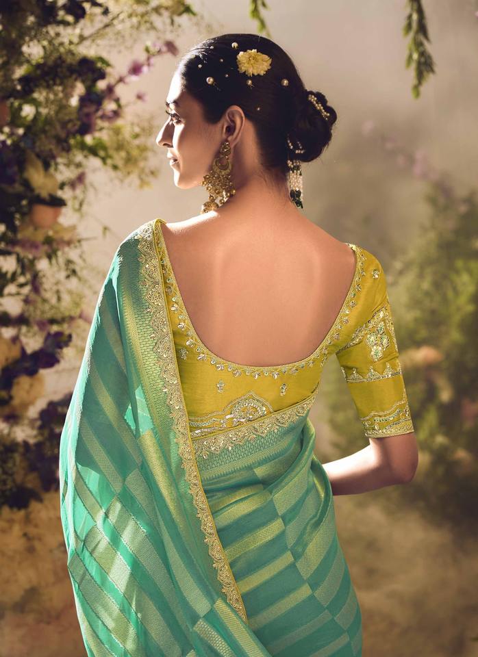 Banarasi Zari-Saree en tissu brodé, bordure en soie, style pakistanais, pour mariage et fête