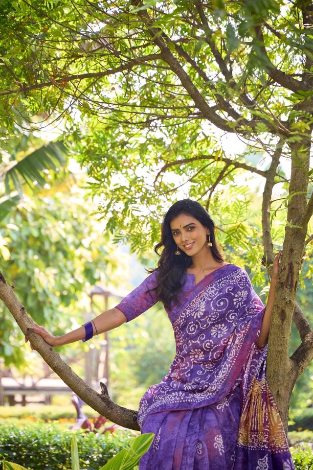 Saree de créateur en coton doux avec imprimé Batiq partout saree, saree de mariage, saree de créateur