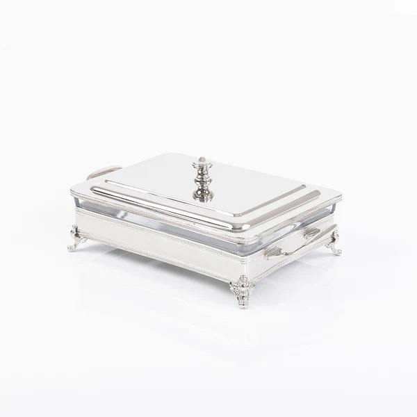 Hot Pot de créateur en acier inoxydable avec des accents dorés et un style indien traditionnel, parfait pour les cérémonies de mariage et les fêtes.