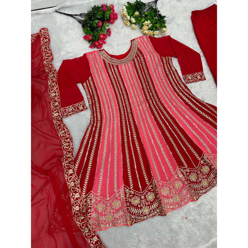 ST Designer Stone Hand Work Top Plazzo and Dupatta in Red Size 42 for Wedding Dresses