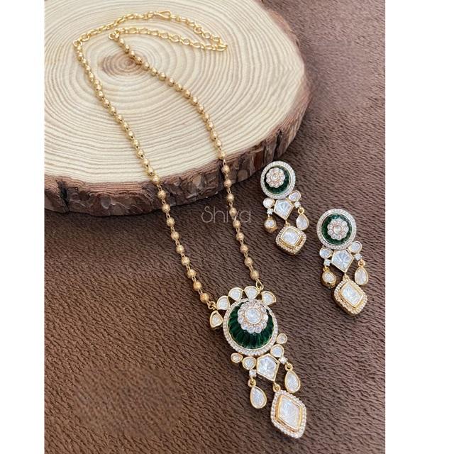 Chaîne plaquée or aspect pierres de créateur ensemble pendentif de meilleure qualité avec boucles d'oreilles pour collier de mariage pour femmes