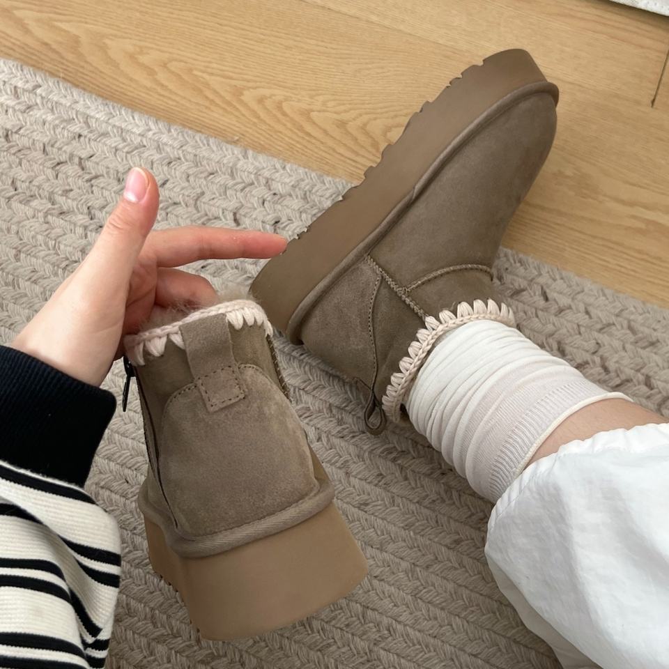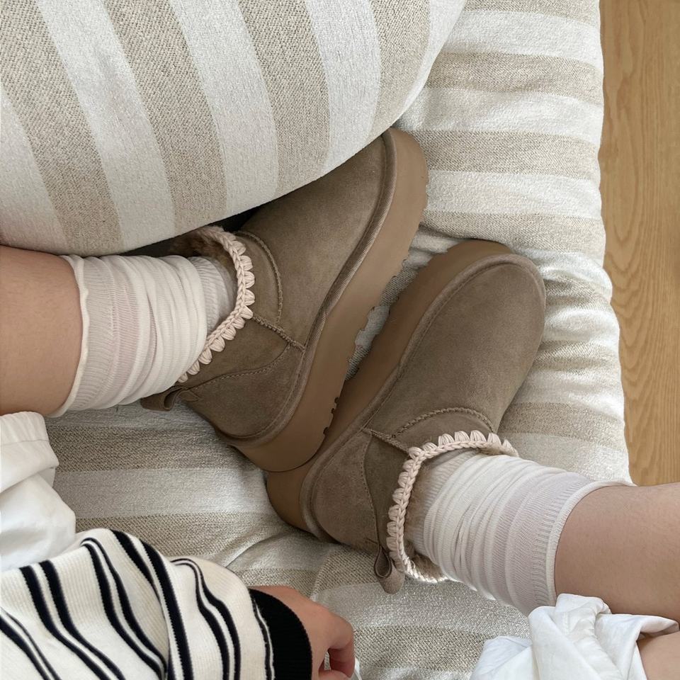Bottes courtes épaisses de style designer, en laine épaisse avec doublure en coton doux, semelle extérieure en caoutchouc EVA antidérapante, chaussures respirantes pour l'hiver