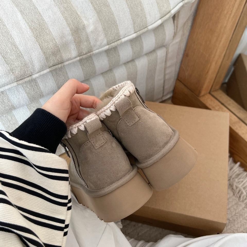 Bottes courtes épaisses de style designer, en laine épaisse avec doublure en coton doux, semelle extérieure en caoutchouc EVA antidérapante, chaussures respirantes pour l'hiver