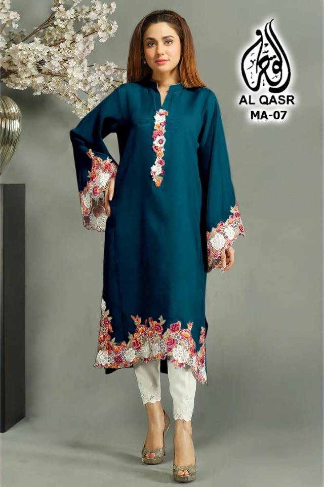 Tunique de créateur élégante avec motif brodé dans les manches Col attrayant avec vêtements indiens et pakistanais Daman Kurti-Pant