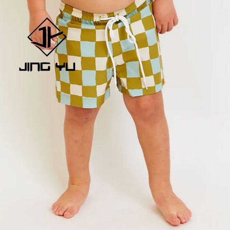 Maillot de bain de créateur, tissu jacquard à carreaux extensible de luxe, maillot de bain pour enfants, OEM, polyester, shorts pour enfants