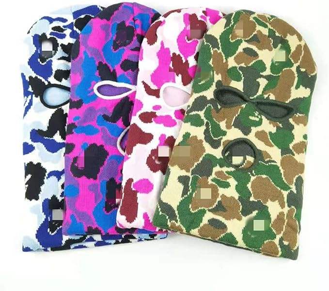 Balaclava en tricot personnalisé à motif jacquard camouflage, protection faciale à trois trous, impression numérique, pour sports et pêche