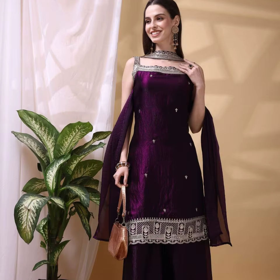 Ensemble haut et bas de créateur avec broderie de fils et sequins, et dupatta élégant, tenue ethnique de soirée pour femme, nouveau design 2026