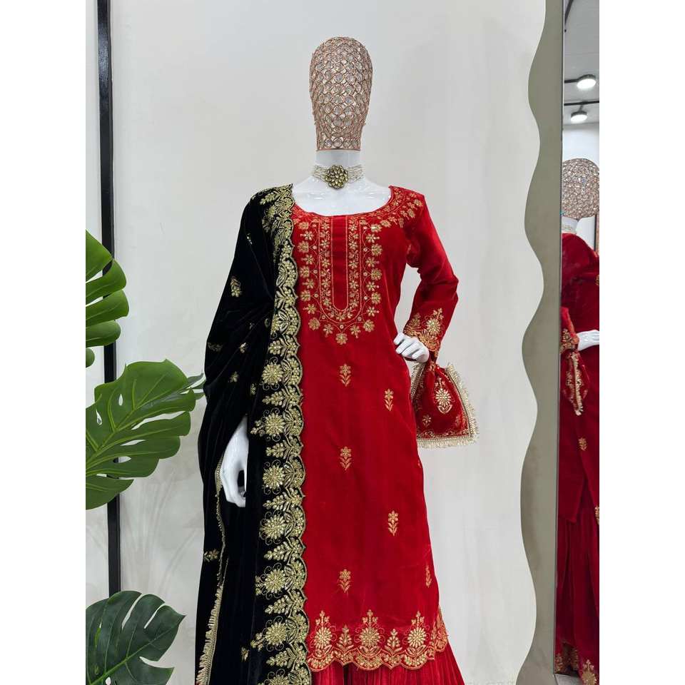 Ensemble haut-bas et Dupatta de créateur pour fête Taille XL