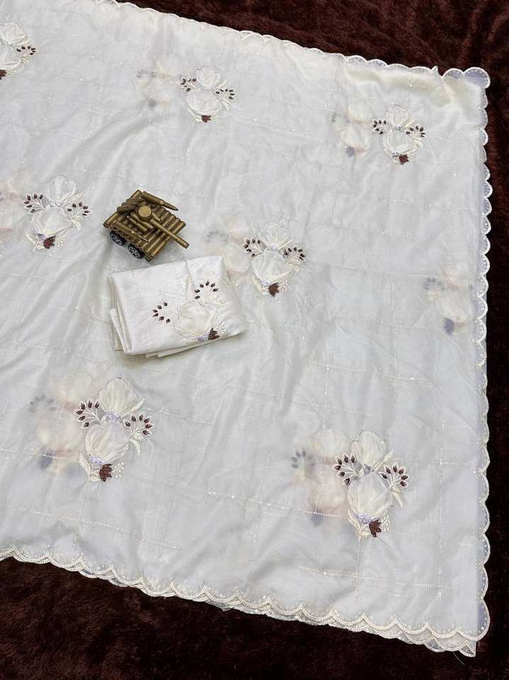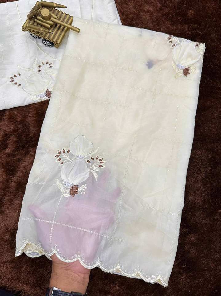 Chemisier sari traditionnel de créateur en soie cristal avec appliques à la main pour femmes et filles pour les mariages en vrac bas