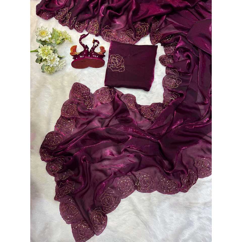 Saree de mariage tendance de créateur avec un beau travail manuel de Katdana